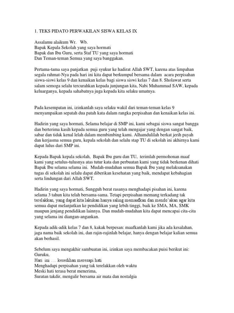 Pidato Perwakilan Kelas 9 Smp Pada Acara Perpisahan Sekolah
