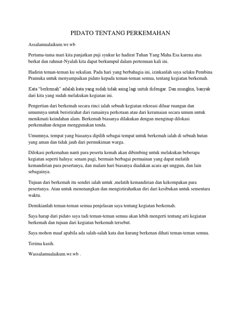 Aku harap bisa berguna yah. Assalammualaikum Wrwb Puji syukur kehadirat Allah Swt. Bagi temen-temen yang aktif di kepramukaan bisa menemukan contoh pidato tema kepramukaan disini.