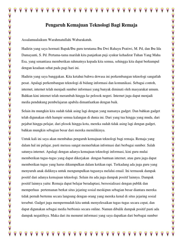 Pidato tentang kemajuan teknologi di kalangan pelajar. Teknologi trsebut biasa dikenal. Contoh Pidato Tentang Teknologi Informasi dan Komunikasi dalam bidang pendidikan. Makalah pengaruh internet bagi perkembangan remaja Dampak Internet Terhadap Siswa Eva Pengaruh Kemajuan Teknologi Bagi Remaja DOC PIDATO TENTANG PERILAKU.