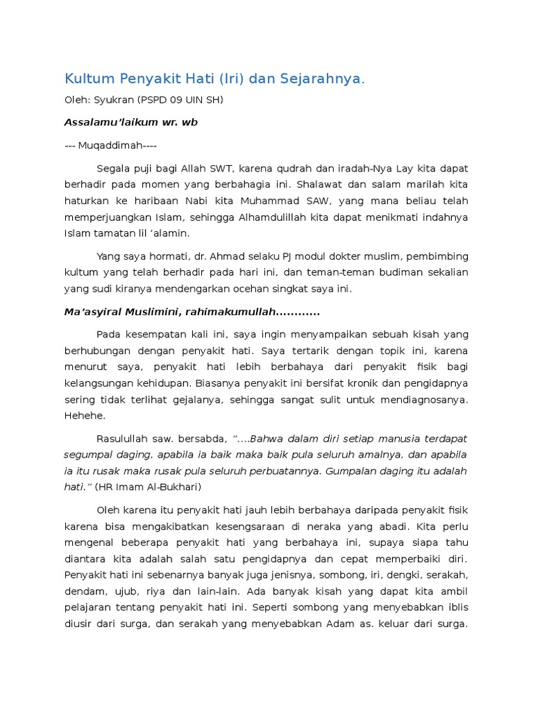 Kultum Penyakit Hati Iri Pdf